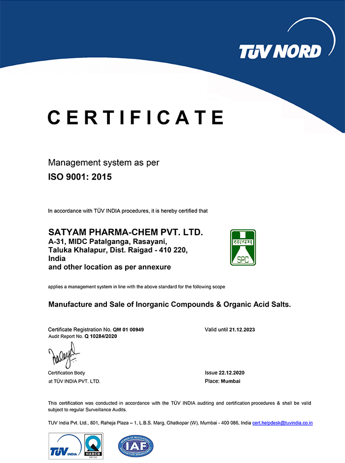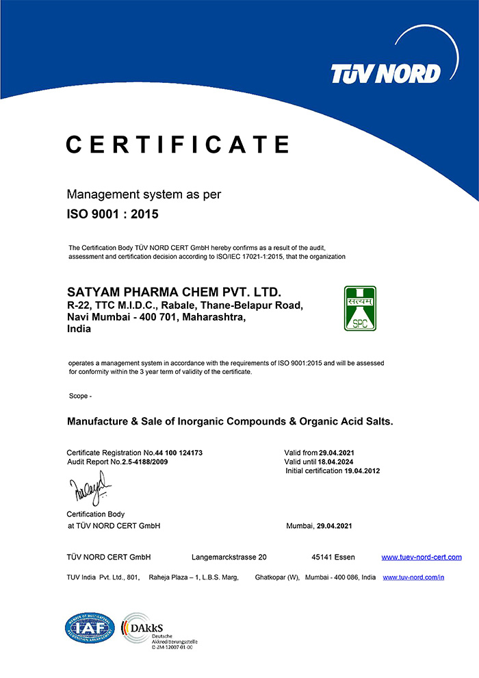 Fondée en 1981 à Mumbai, en Inde, SATYAM est un fabricant de produits chimiques spéciaux à base de métaux, avec une clientèle dans plus de 35 pays à travers le monde. En étroite collaboration avec ses clients, SATYAM propose une variété de qualités, des spécifications et des emballages personnalisés qui conviennent le mieux à chaque application. L’usine de SATYAM est certifiée IATF 16949, ISO 9001, ISO 14001 et ISO 45001. Avec une installation de contrôle de qualité de classe mondiale, SATYAM offre également des services techniques et analytiques à ses précieux clients.